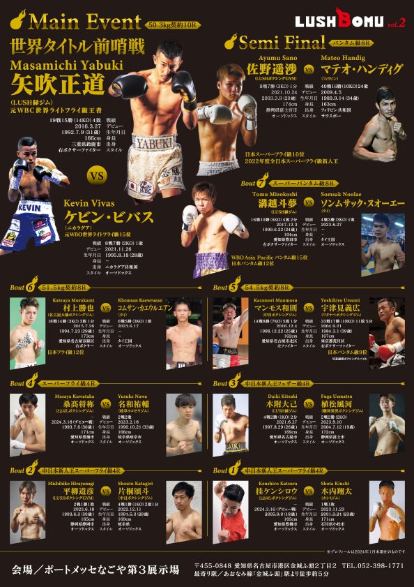 - 前WBC世界ライトフライ級王者矢吹正道復帰戦など全9試合&ライブステージ