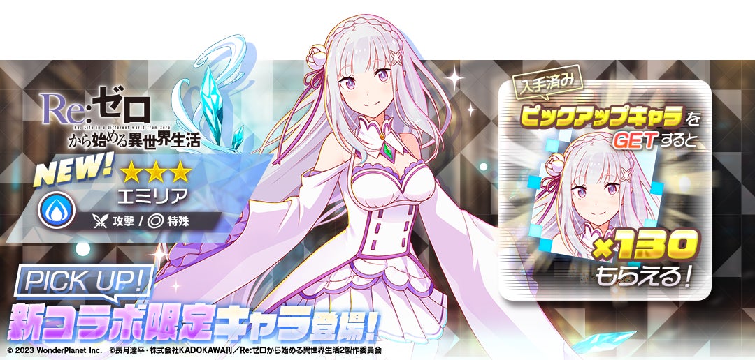 コラボ限定キャラ「★3 エミリア」「★3 レム」をピックアップしたガチャを開催!