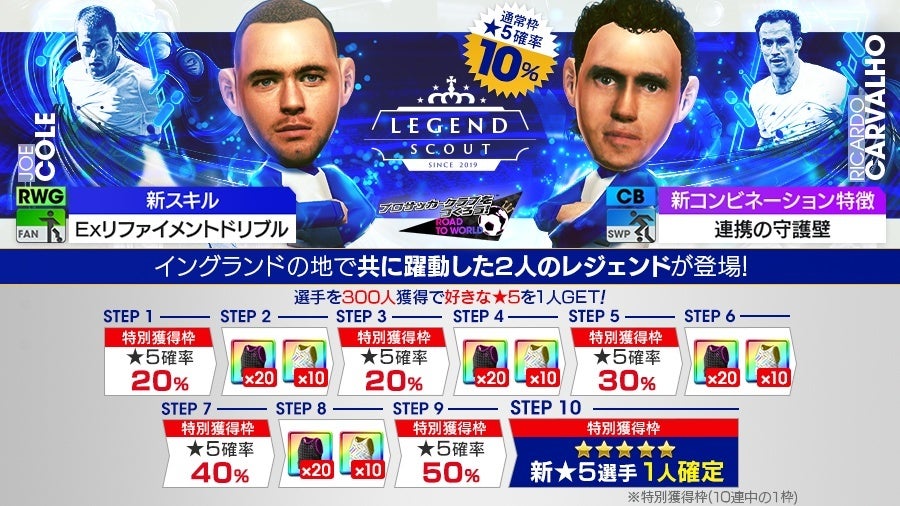 『プロサッカークラブをつくろう! ロード・トゥ・ワールド』では、ジョー・コールやリカルド・カルヴァーリョなどのレジェンド選手が登場する特典付きスカウトやスペシャルログインボーナスが開催されています。