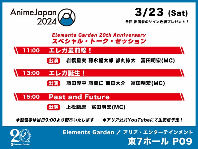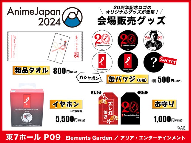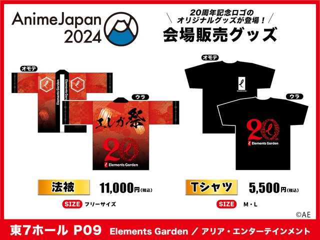 Elements Garden/アリア・エンターテインメントのブースでは20周年記念のオリジナルグッズが販売され、メンバーやアーティストとのトークイベントも予定されています。
