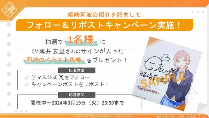 また、姫崎 莉波の紹介を記念してフォロー&リポストキャンペーンも実施中です。