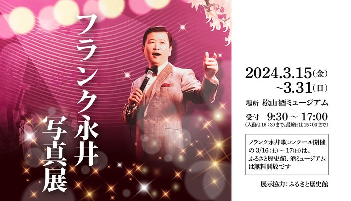 2024年3月15日から31日まで、松山酒ミュージアムで「フランク永井写真展」が開催されます。