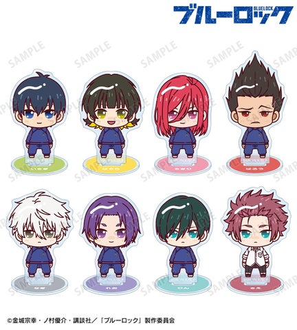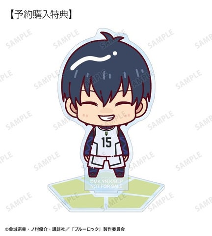 - TVアニメ『ブルーロック』のグッズ、アクリルキーホルダー、アクリルスタンド、アクリルカード、缶バッジ、A3マット加工ポスター、ちびキャラ、予約購入特典