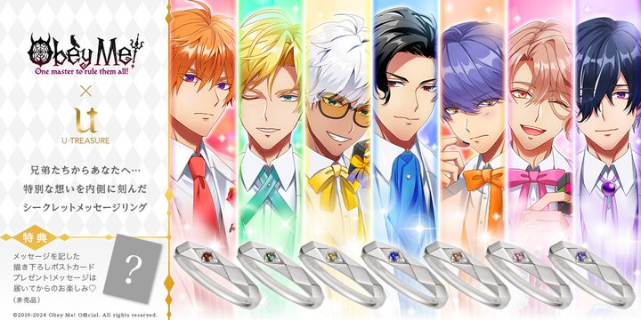 株式会社ユートレジャーは、「Obey Me!」とのコラボレーションアイテム「シークレットメッセージリング」の予約受付を開始します。