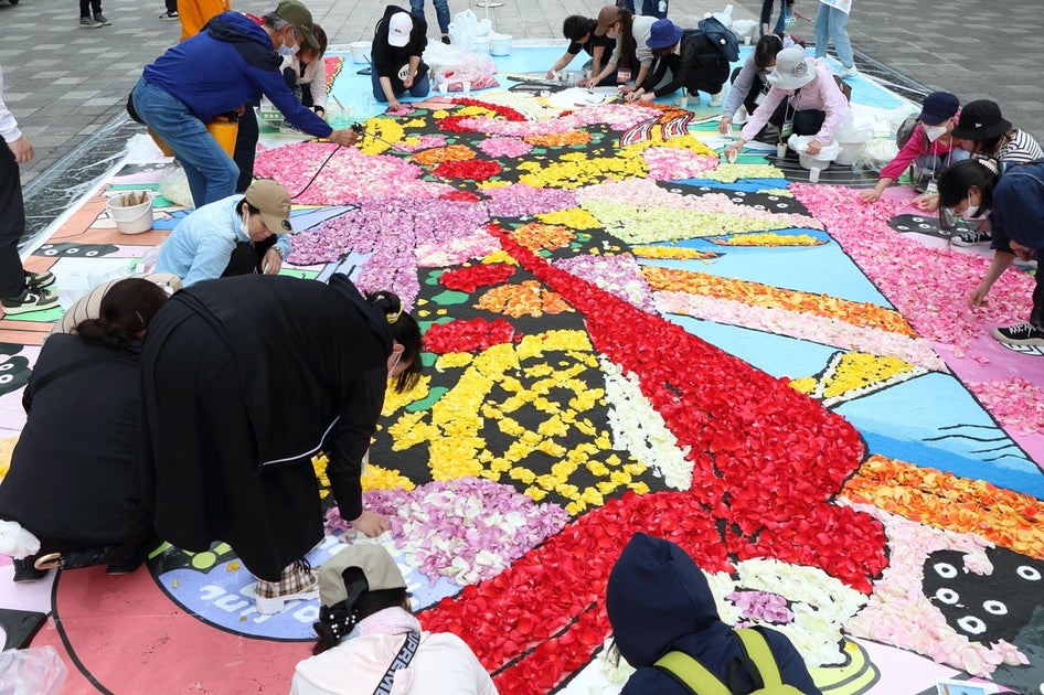 ヤン坊マー坊新デザインの花絵が登場!YANMAR TOKYOでインフィオラータイベント開催中
