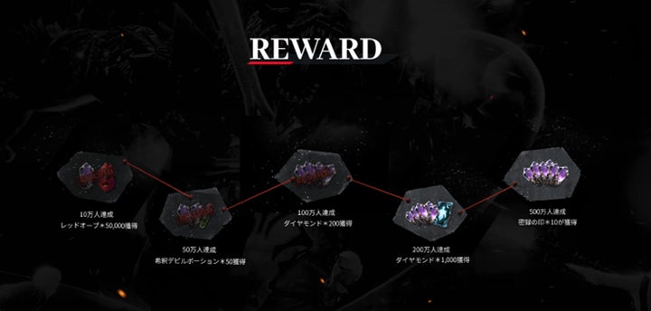 事前エントリー者が100万人を突破すると、豪華な報酬がもらえます。