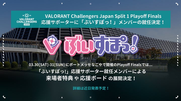 また、「VALORANT Challengers Japan 2024 Split 1 Playoff Finals」ではVTuberグループ「ぶいすぽっ!」が応援サポーターに就任します。