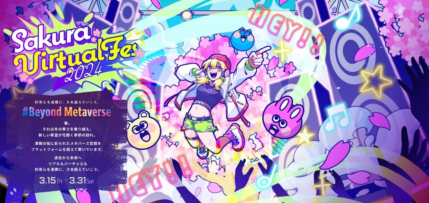- イベントでは桜満開のメタバースで音楽ライブやVTuberフェスなどのエンタメコンテンツが楽しめる。