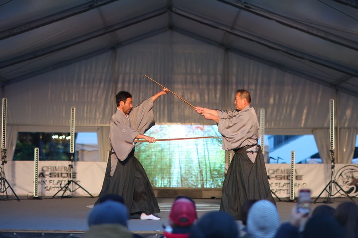 競技者たちは宮本武蔵の極意を学ぶ特別バスツアーや兵法の演武を体験しました。
