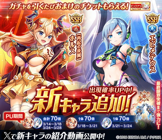 2024年3月14日から28日まで、新たな神姫「ホルス」「エピメテウス」が登場します。