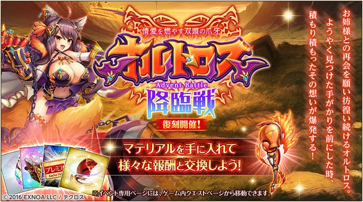 - SSR幻獣「オルトロス」降臨戦復刻。
