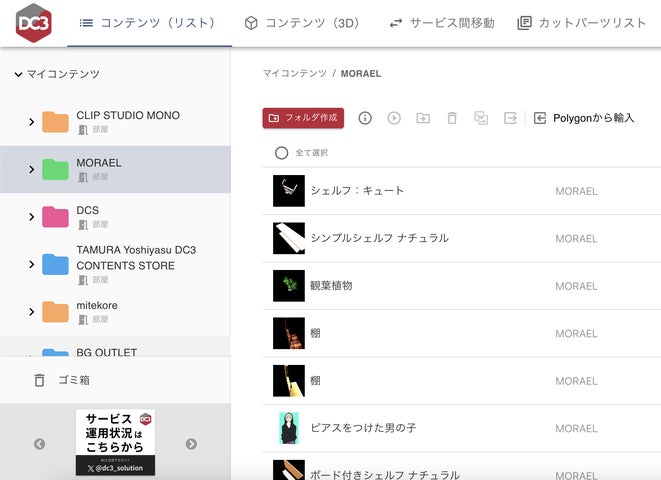 今回のアップデートでは、「DC3マイルーム」のコンテンツ表示速度が大幅に向上し、ファイリングフォルダ機能が追加されました。