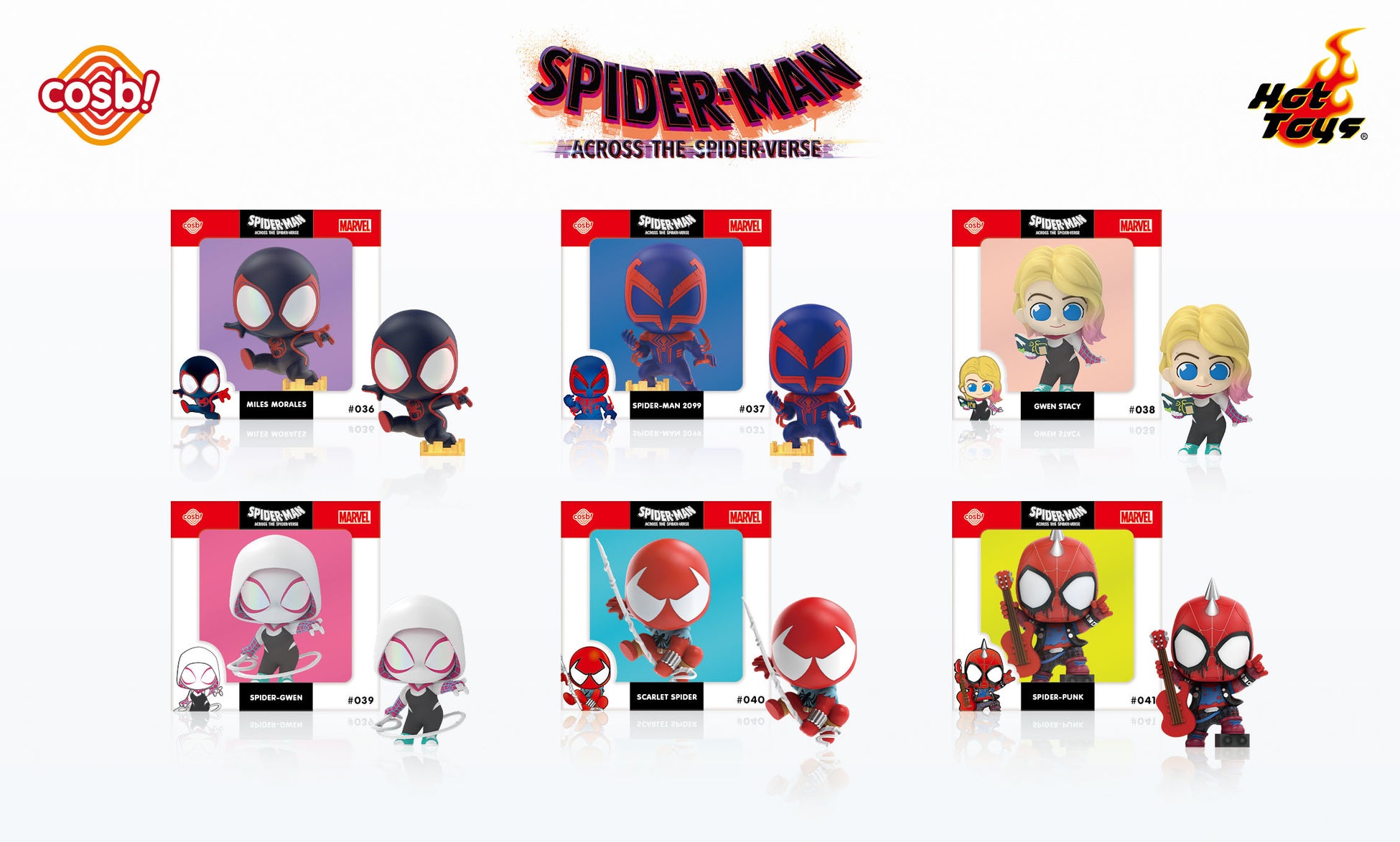 ホットトイズがお贈りする、シンプルで愛らしいフォルムと集めやすいサイズが特徴的なデフォルメフィギュア「コスビ」シリーズ。「マーベル・コレクション」に、映画『スパイダーマン:アクロス・ザ・スパイダーバース』のキャラクターが登場!日本オリジナルのパッケージは、そのまま飾っても可愛いウィンドウボックス仕様となっている。