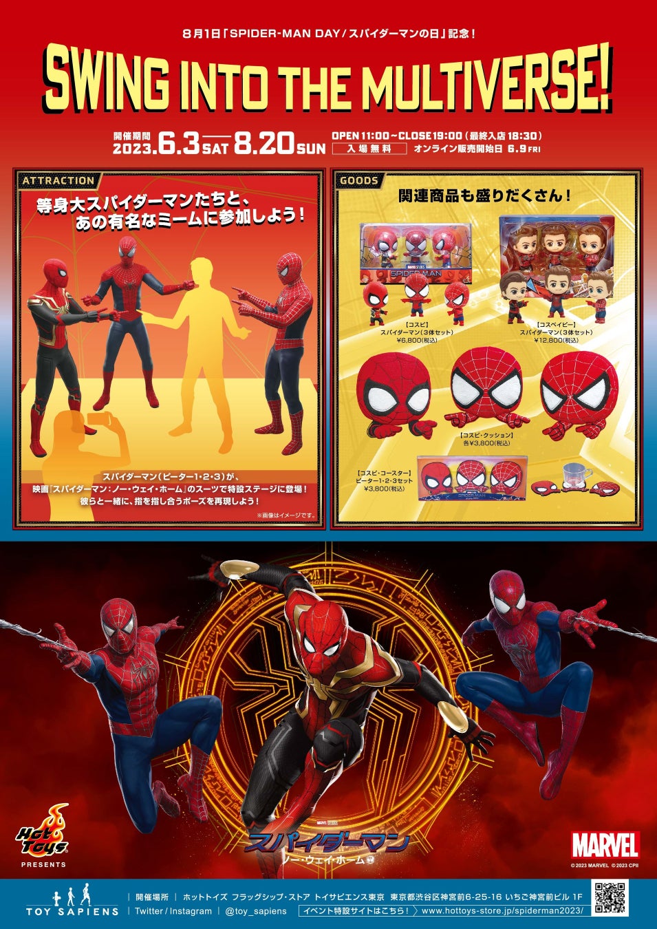2023年6月3日から8月20日まで、ホットトイズ フラッグシップ・ストア「トイサピエンス」で、期間限定イベント「スパイダーマン/スイング・イントゥ・ザ・マルチバース!」が開催される。