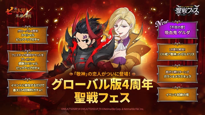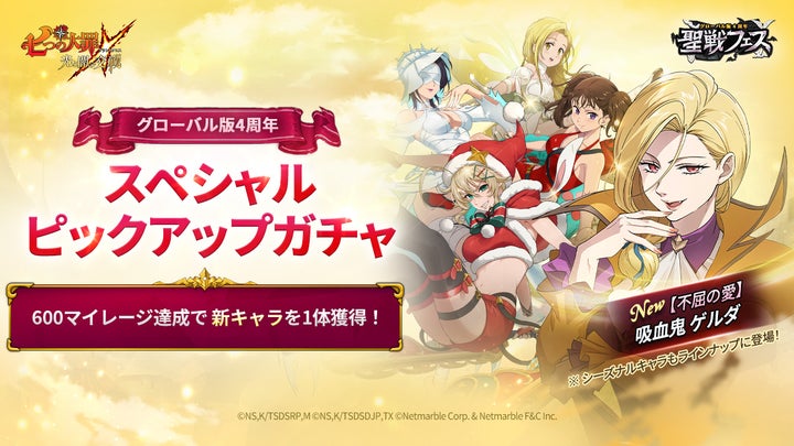 グローバル版4周年スペシャルピックアップガチャが開催中です!新キャラクター【不屈の愛】吸血鬼 ゲルダが登場しました。