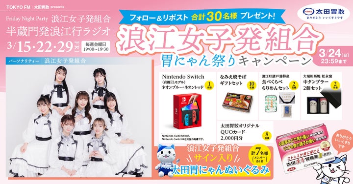 さらに、TOKYO FMで放送される『太田胃散 presents Friday Night Party 浪江女子発組合 半蔵門発浪江行ラジオ』とのコラボ企画です。