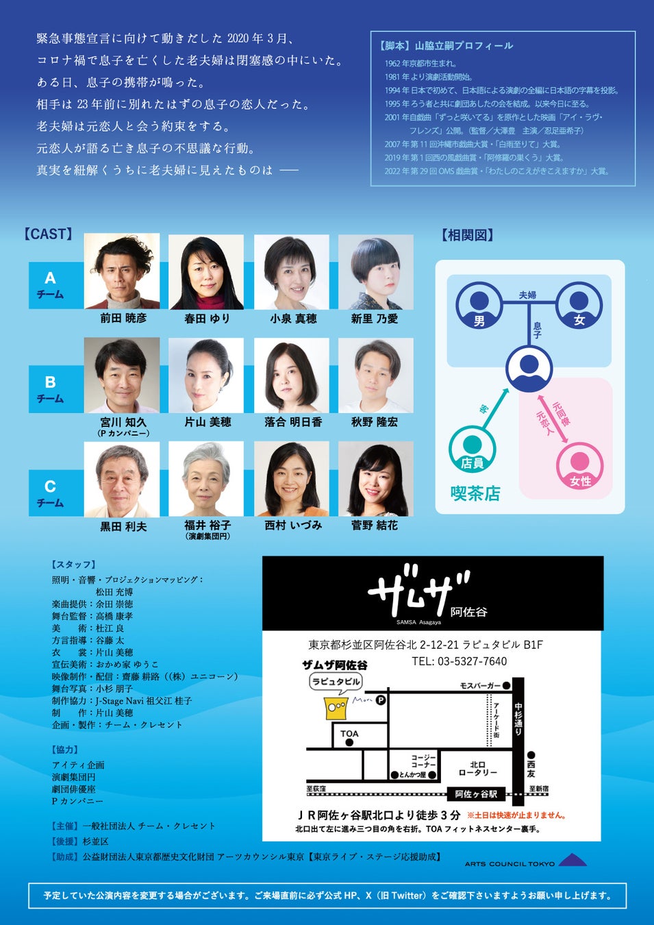 公演は東京都杉並区のザムザ阿佐谷で行われ、チケットは一般5000円、高校生以下3500円です。
