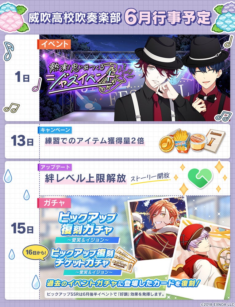6月1日(木)より「熱演!思い出つくるジャズイベント」、16日(金)より「気分は南国!ブリッランテサマー」のイベントを開催します。また6月15日(木)には絆レベルの上限解放を実施します。