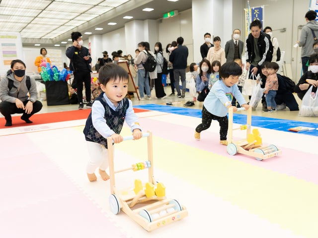 昨年好評だったイベントで、赤ちゃんから幼児まで楽しめるレースや電車関連のアトラクションが用意されています。