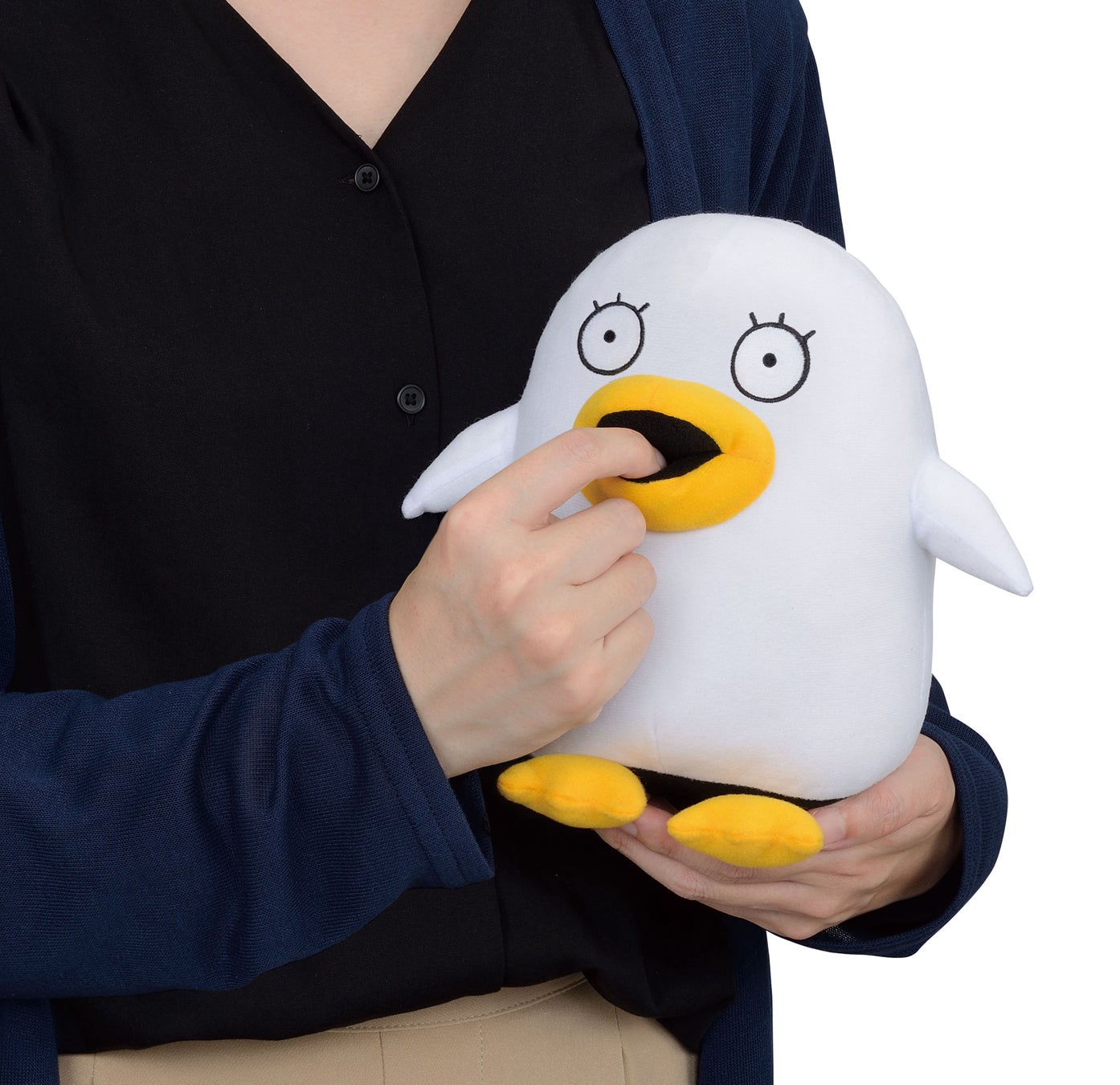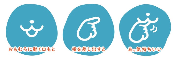 この甘噛みロボットは、子育ての思い出から生まれた癒やしのアイテムで、指を入れると様々な甘噛みを楽しめます。