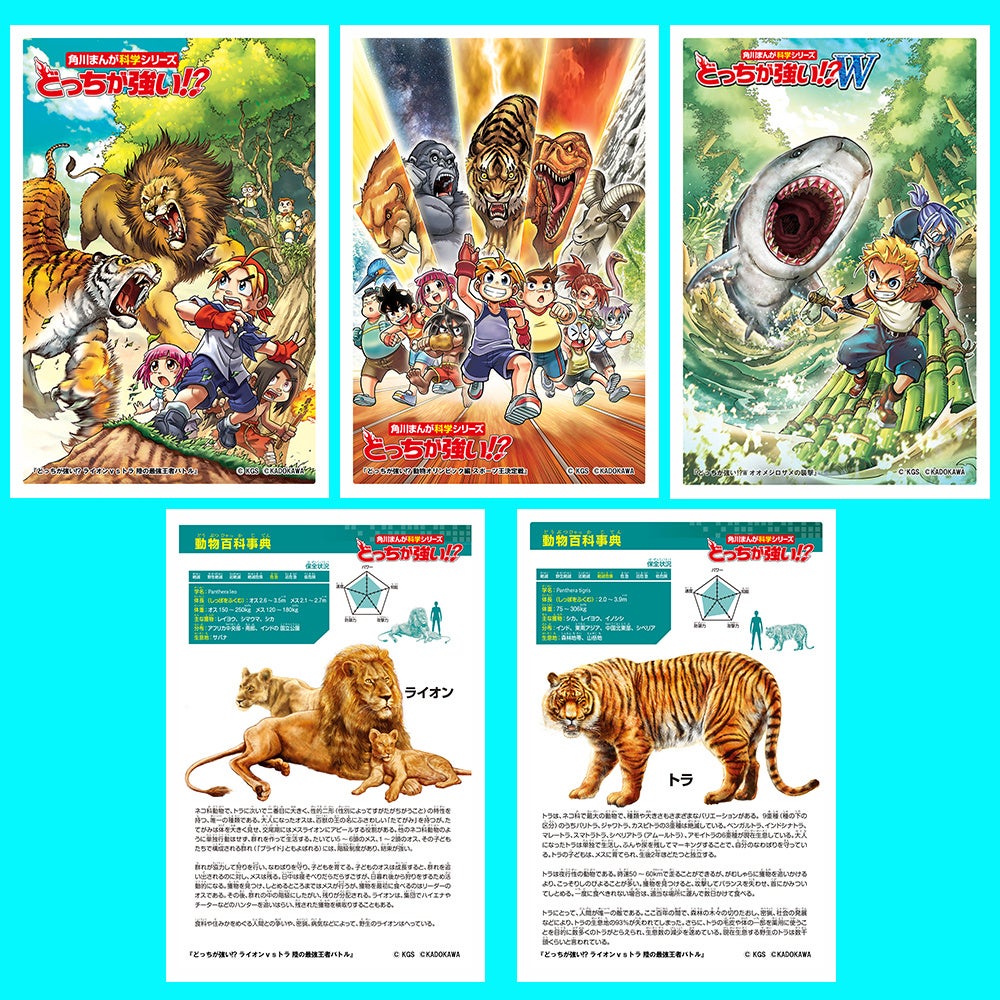 ライオンvsトラや動物オリンピックなど、様々なテーマが描かれています。