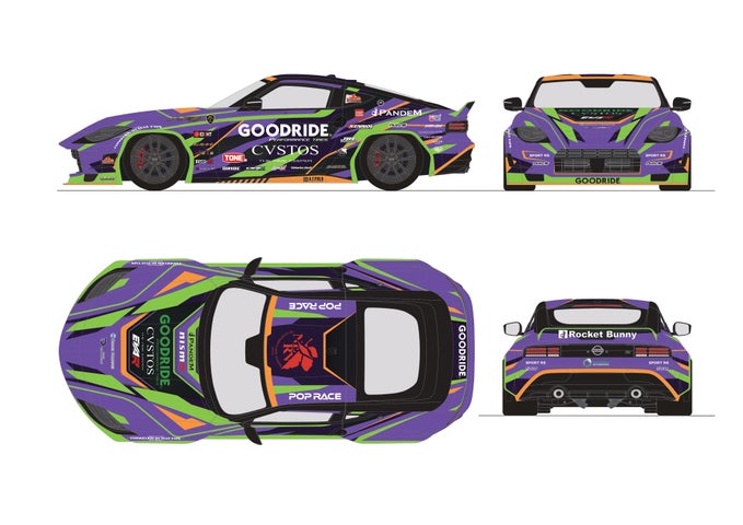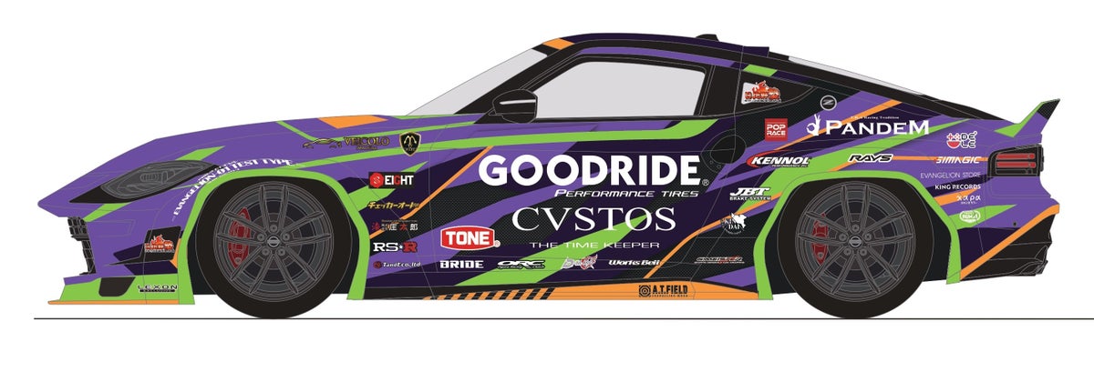 さらに、エヴァンゲリオンとのタイアップで「エヴァンゲリオン レーシング」チームを結成し、紫と黄緑のカラーリングの「エヴァ RT初号機GOODRIDEフェアレディZ」が登場しました。