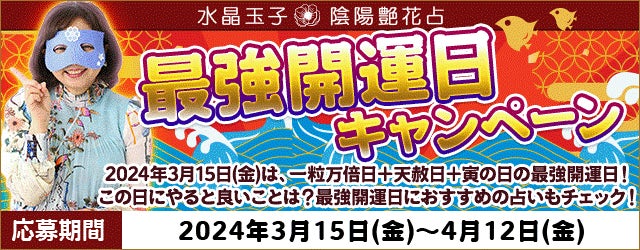 水晶玉子の公式サイトでは、3月15日が「最強開運日」として特別キャンペーンを実施中です。
