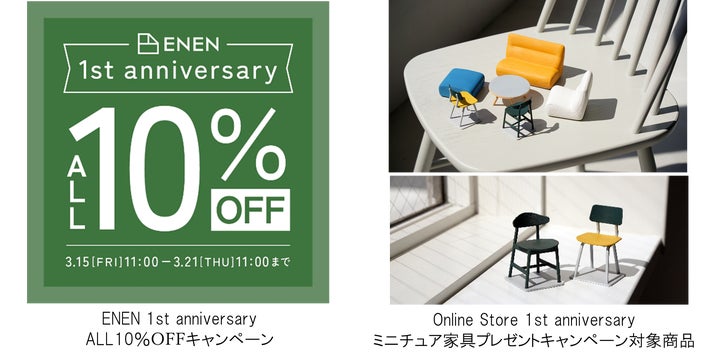 - 「ENEN周年祭」開催で10%オフやミニチュア家具プレゼントなどの特典