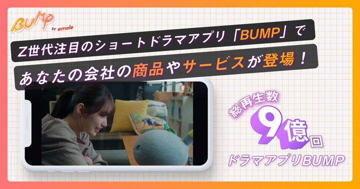 emole株式会社が開発する3分のショートドラマアプリ「BUMP」がプロダクトプレイスメント広告を導入しました。