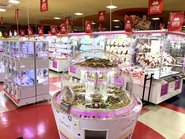 クレーンゲームや音楽ゲームを取り揃え、豊富な景品も用意されます。