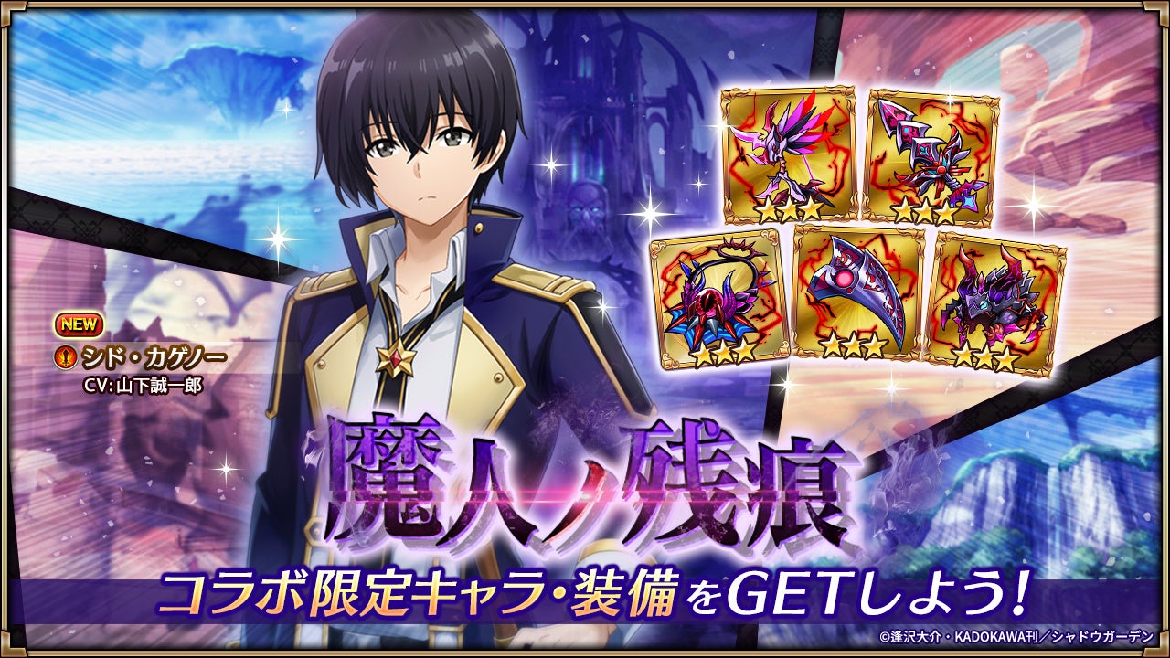 コラボキャラ「シド・カゲノー」とオリジナル衣装「シャドウ」「アルファ」「ベータ」「デルタ」「イプシロン」が登場します。