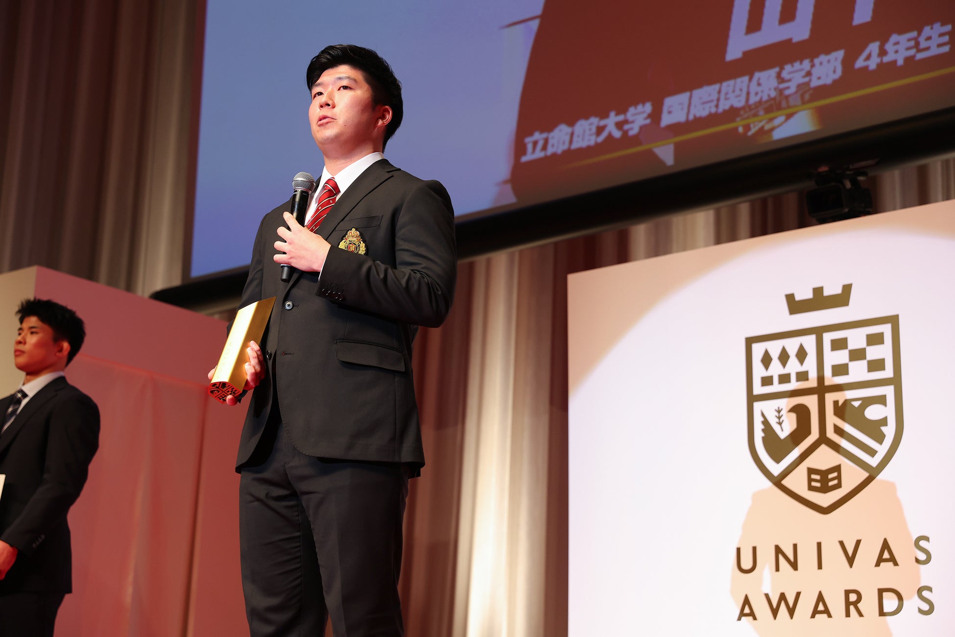UNIVAS会長は大学スポーツの重要性や課題に触れ、受賞者やサポーティングスタッフを祝福し、大学スポーツの社会的な存在価値を強調しました。