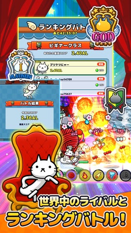 プリっとしたおしりが特徴のネコたちが登場し、縦画面で片手操作やオートバトルシステムなどが特徴です。