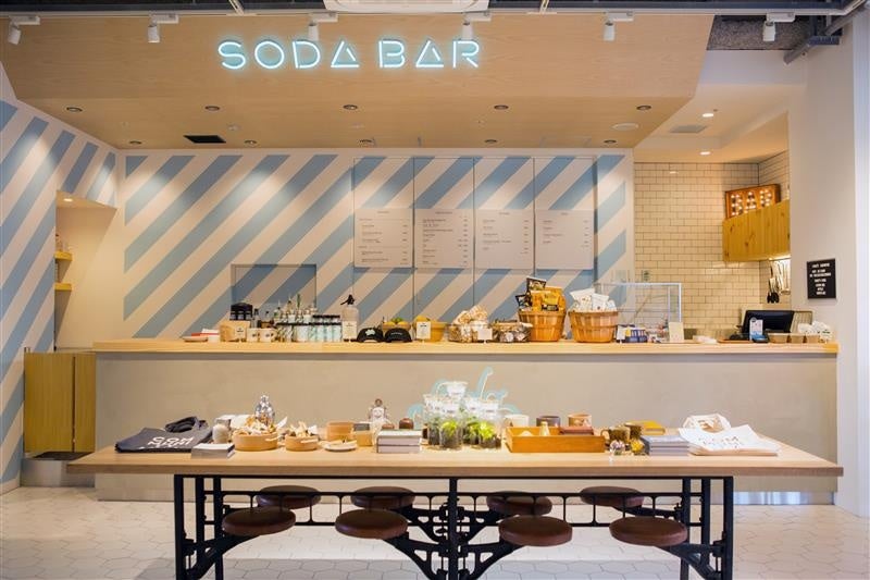 1900年から1930年に全盛期を誇った炭酸飲料を提供する業態『ソーダファウンテン』は、エアコンの無い時代のアメリカで清涼感のあるドリンクを提供するコミュニケーションスポットとしてとてもにぎわったそうです。SODA BARは当時の『ソーダファウンテン』のように人々が気軽に集い、ハイセンスな情報交換が行われるカルチャー発信地にしようとスタートしました。ナチュラルな素材を使用し時間と手間を掛け、手作りにこだわったシロップは素材の美味しさが詰まったSODA BARオリジナルとなっています。