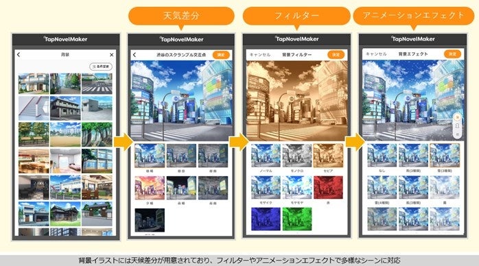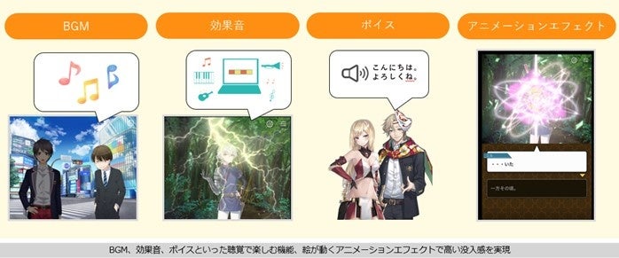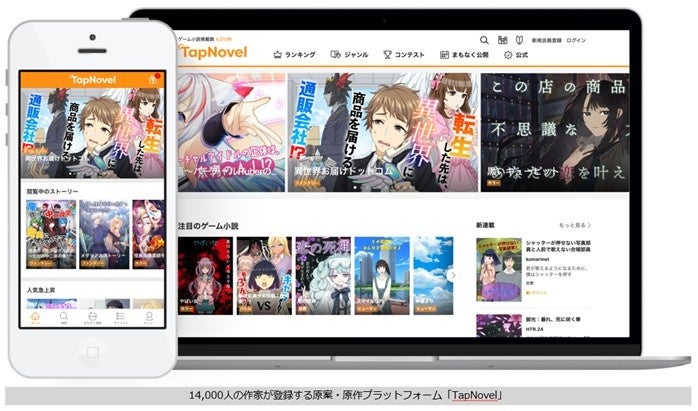 TapNovelの事業譲受により、1万4,000人以上の作家が登録し、7,000以上の作品が掲載されており、小説をビジュアライズし、音声やアニメーションエフェクトで楽しめるサービスです。