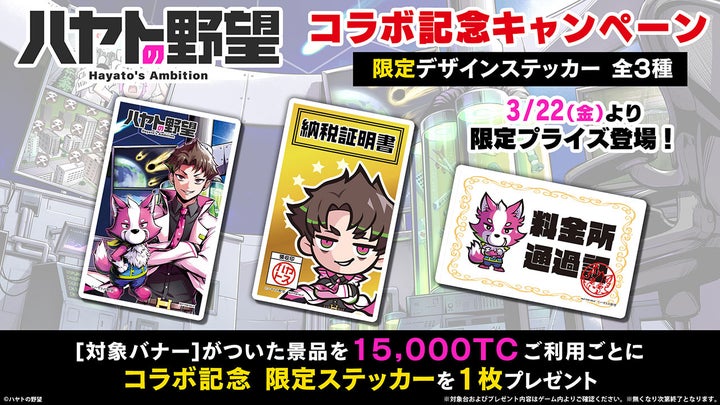 SDイラストを使った「ハヤトス」「ハヤトス犬」の3アイテムや、ハヤト氏のスペシャルボイスやゲーム内キャラクターが登場します。