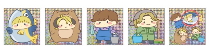 - アイテムはロンT、パーカー、缶バッジ、キラキラシールなど豊富