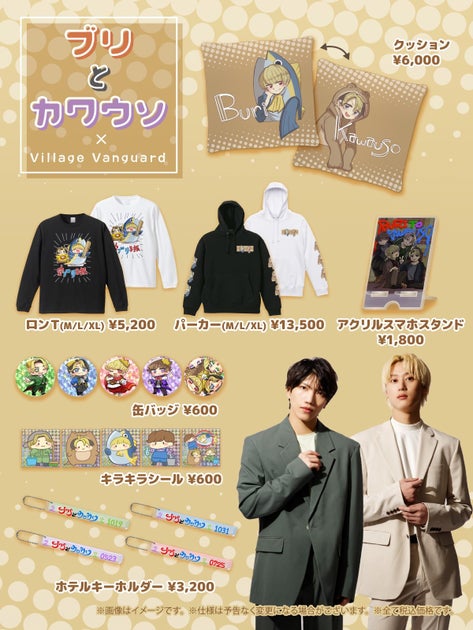 2024年3月15日から、TikTok再生回数4億回&YouTube登録者45万人超の【ブリとカワウソ】とヴィレッジヴァンガードが限定コラボグッズをオンラインストアで発売します!ロンT、パーカー、缶バッジ、キラキラシール、ホテルキーホルダー、アクリルスマホスタンド、クッションなど豊富なアイテムが揃います。