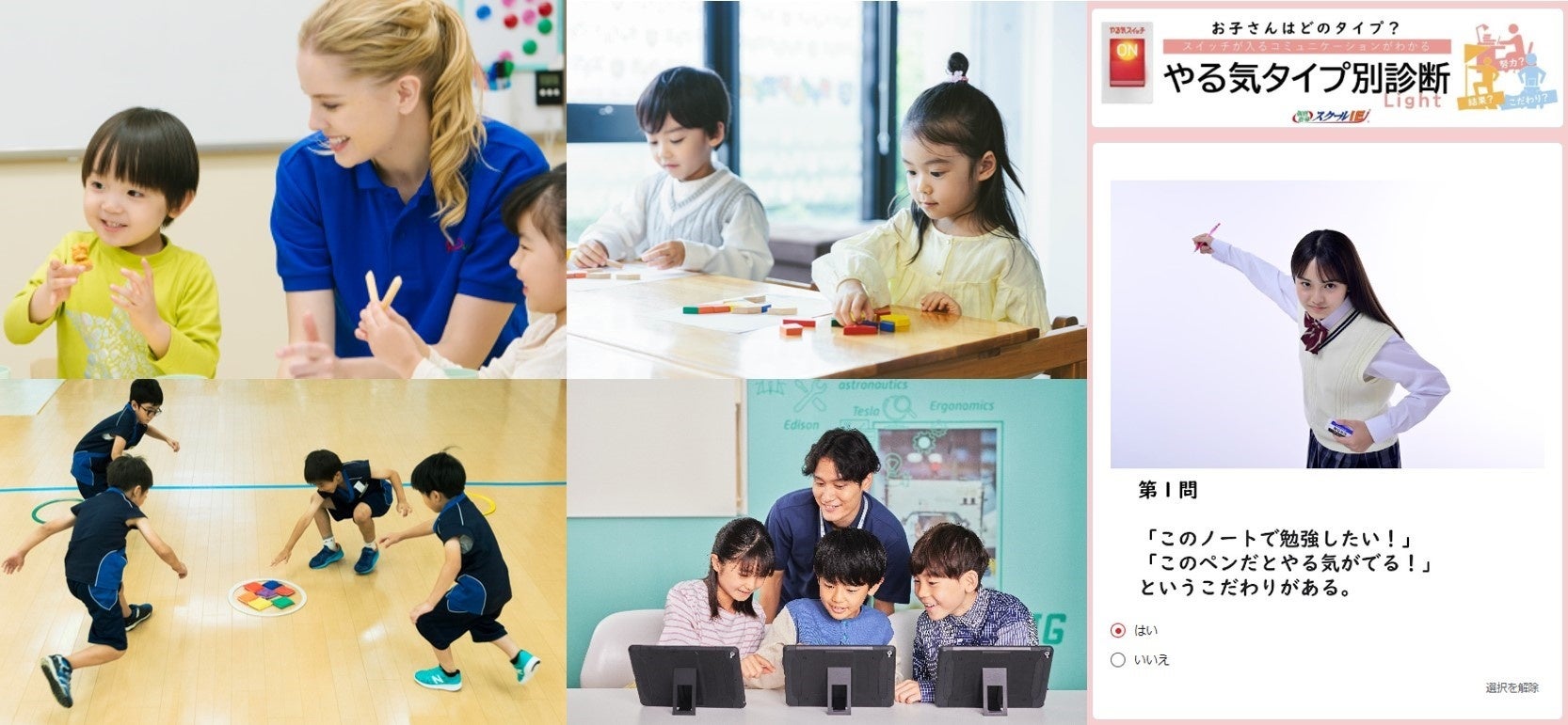 やる気タイプ別診断、英語体験、忍者チャレンジ、プログラミング
