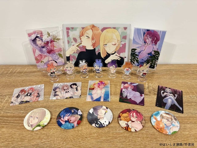 缶バッジ、アクリルカード、アクリルぷちスタンドなどがラインナップされています。