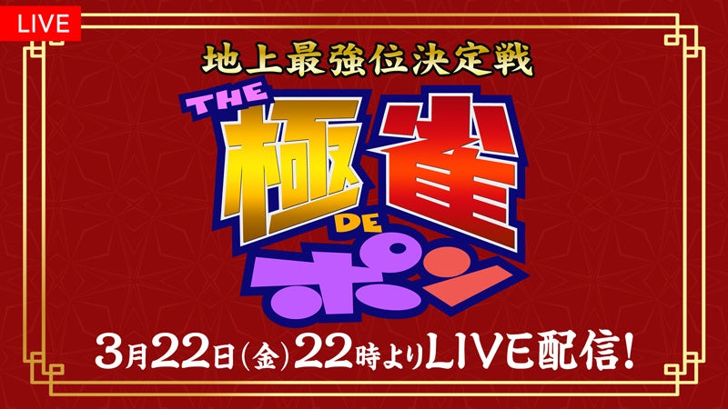 フジテレビは3月22日に『地上最強位決定戦~THE極雀DEポン』を生放送・生配信することを発表しました。