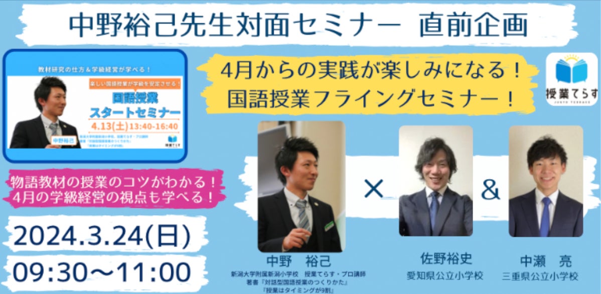 新潟大学附属新潟小学校の中野裕己先生が主催する国語授業セミナーが開催されます。