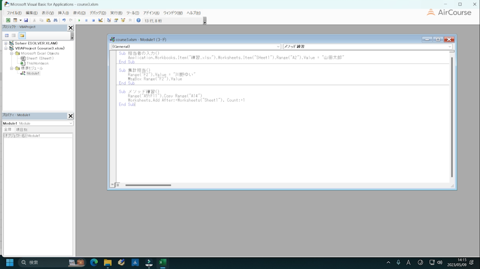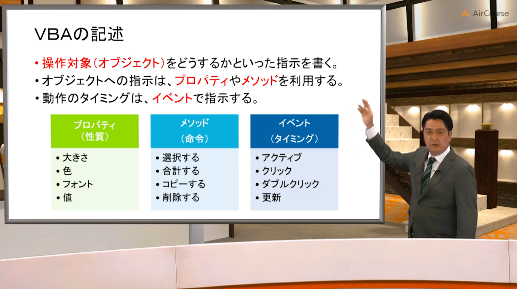 - Excelマクロ&VBA基礎コース、AirCourseのExcelシリーズ