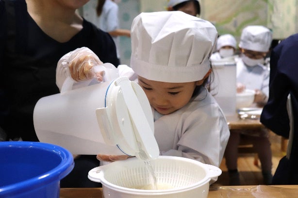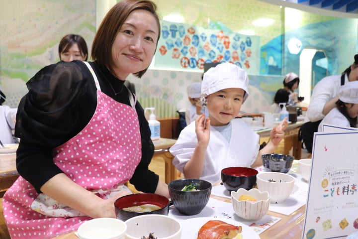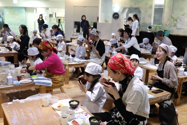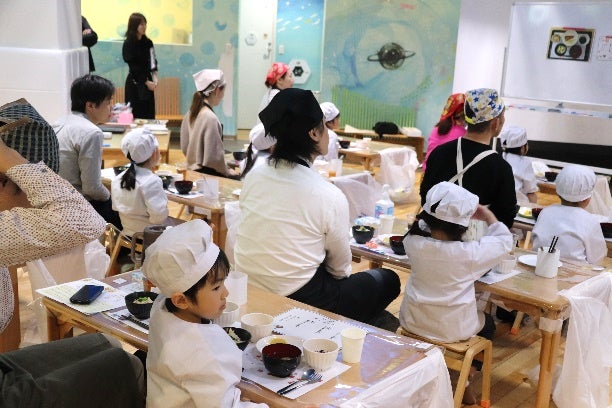 子どもたちが親に感謝の気持ちを込めて料理を振る舞い、和食体験を楽しむ様子が会場に広がりました。