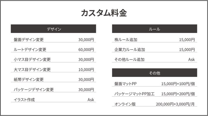 企業の歴史をボードゲーム化し、社員のエンゲージメント向上や企業PRに活用可能です。
