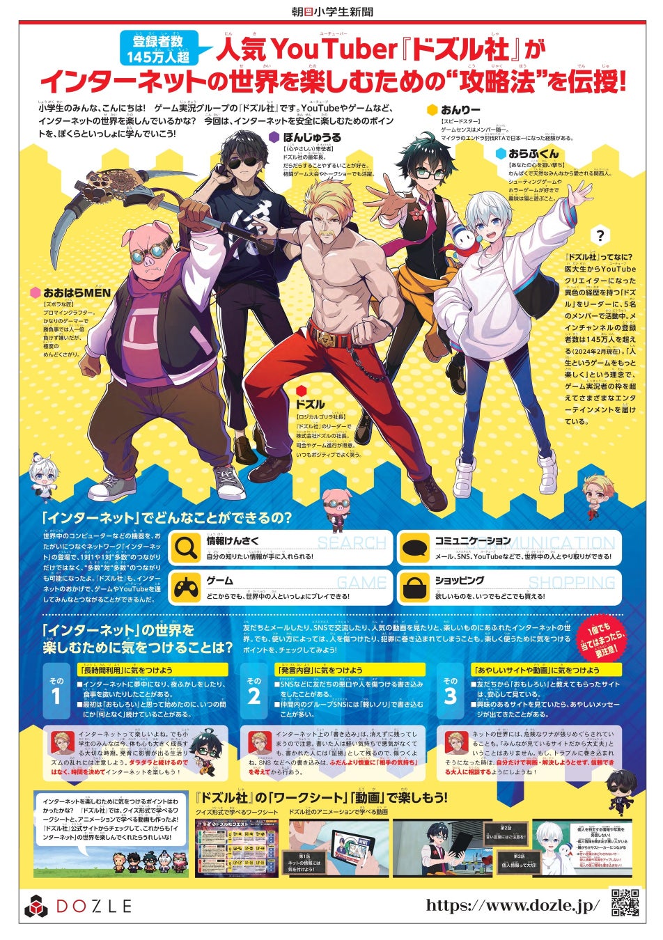 - ドズル社と朝日小学生新聞が2024年3月に小学校5,000校にインターネットマナー教材を無償配布