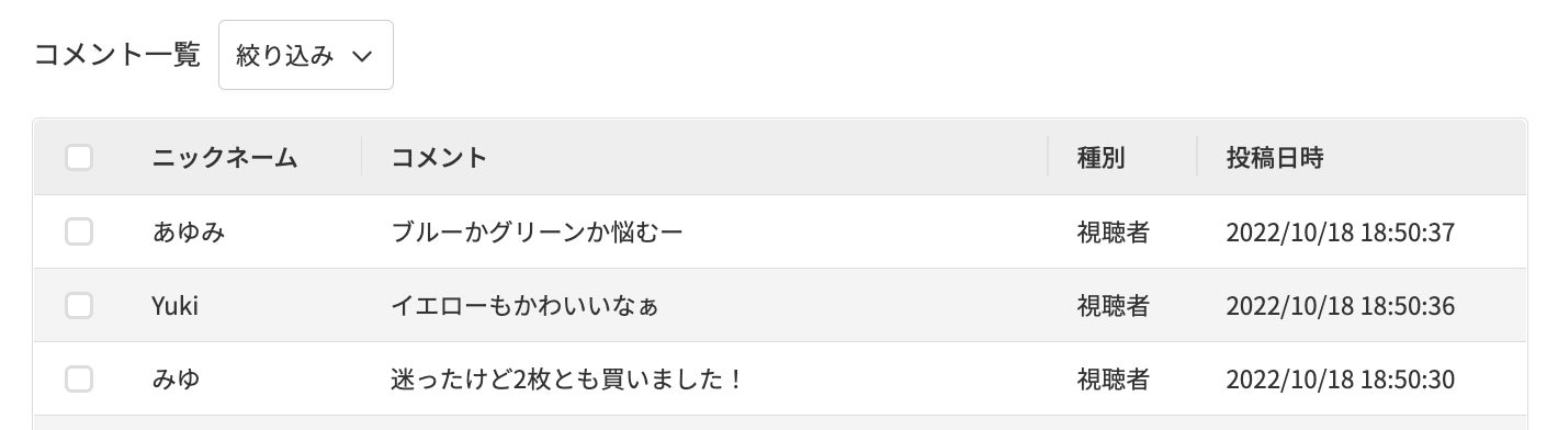 定量データだけではありません。SNSライブのアーカイブ動画では消えてしまうライブ中の「視聴者コメント」も、「Live cottage」では後から振り返ることができるようになっており、定性データでライブを振り返ることも可能です。