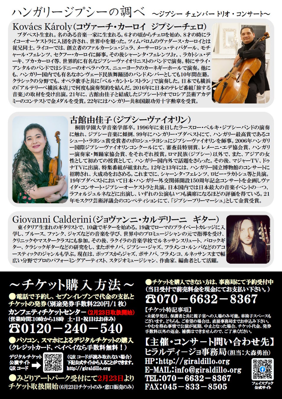 - 2024年6月23日に横浜市で「ジプシー チェンバー トリオコンサート」開催