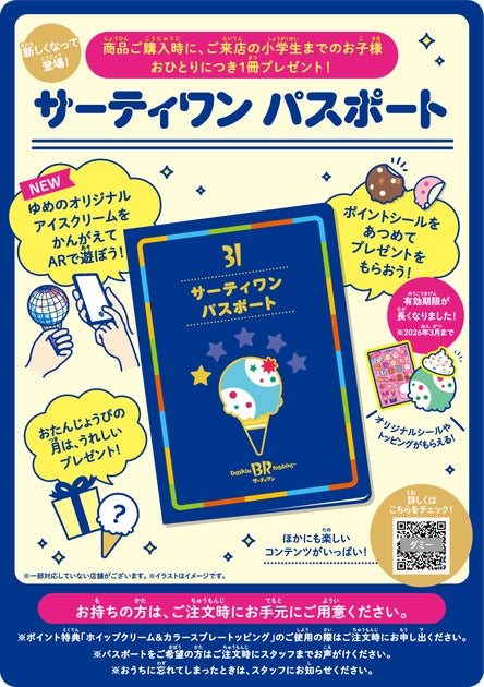 - BRサーティワンアイスクリームが小学生向けに「サーティワンパスポート」提供