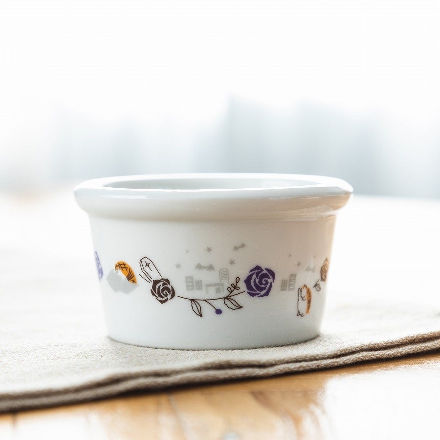 食器セットには、それぞれのキャラクターをイメージしたプレートやココット、木製スプーンが含まれており、ココットには新横浜の街並みや「新横浜吸血鬼退治人組合」をイメージした模様が楽しげに並びます。